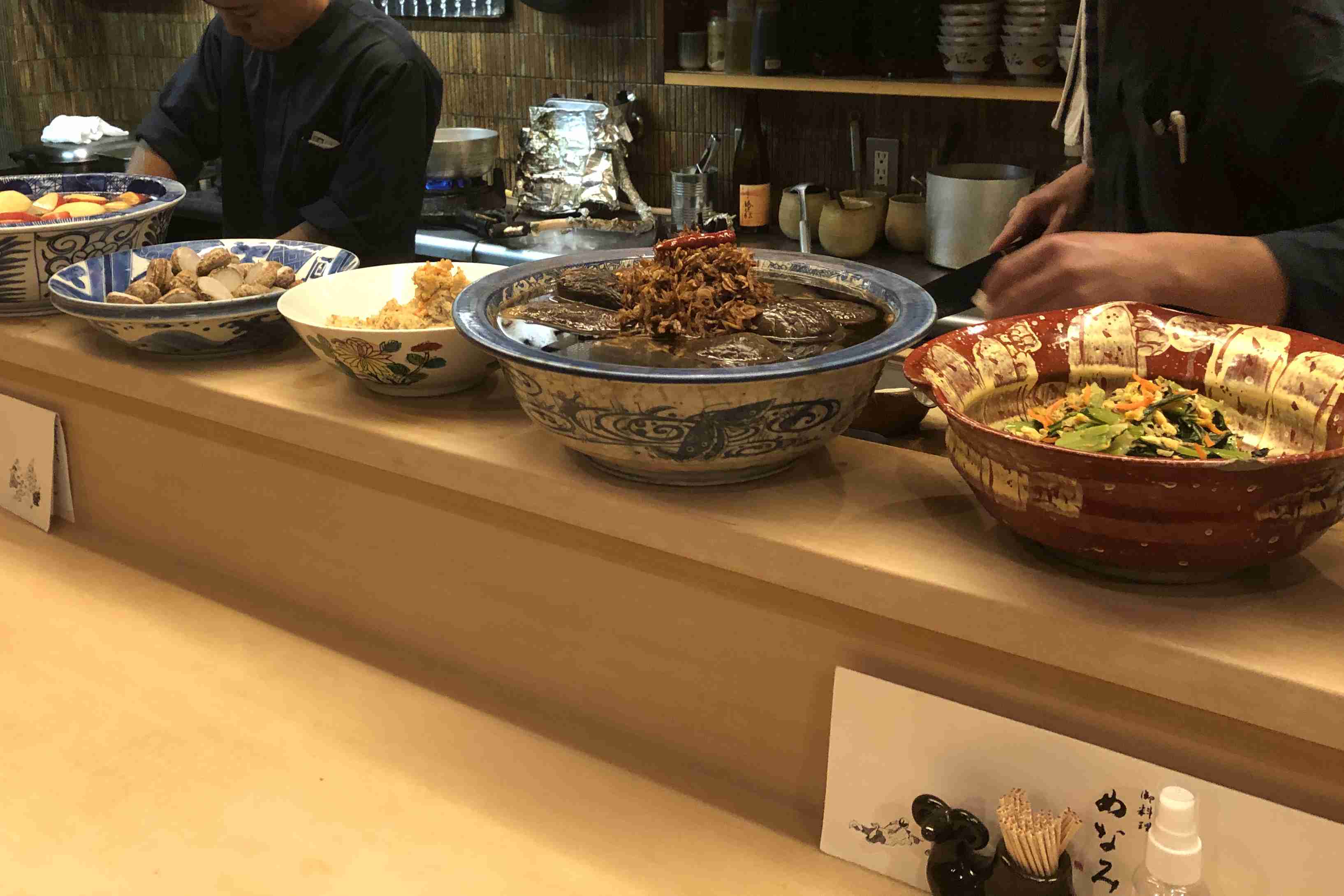 | 賀茂なす料理、以前あった菖蒲園が無くなったので、今なら萬川(上賀茂)か。 | 鱧料理の名店は間違いなく「堺萬」だが、二傳(写真)も捨てがたい。 | 万願寺唐辛子はおばんざいに「万願寺とじゃこの炊いたん」が定番。唐辛子自体は露店売りでも売られている。 | くずきりと言えば鍵善良房(四条、写真)。観光客は皆知っている。 |