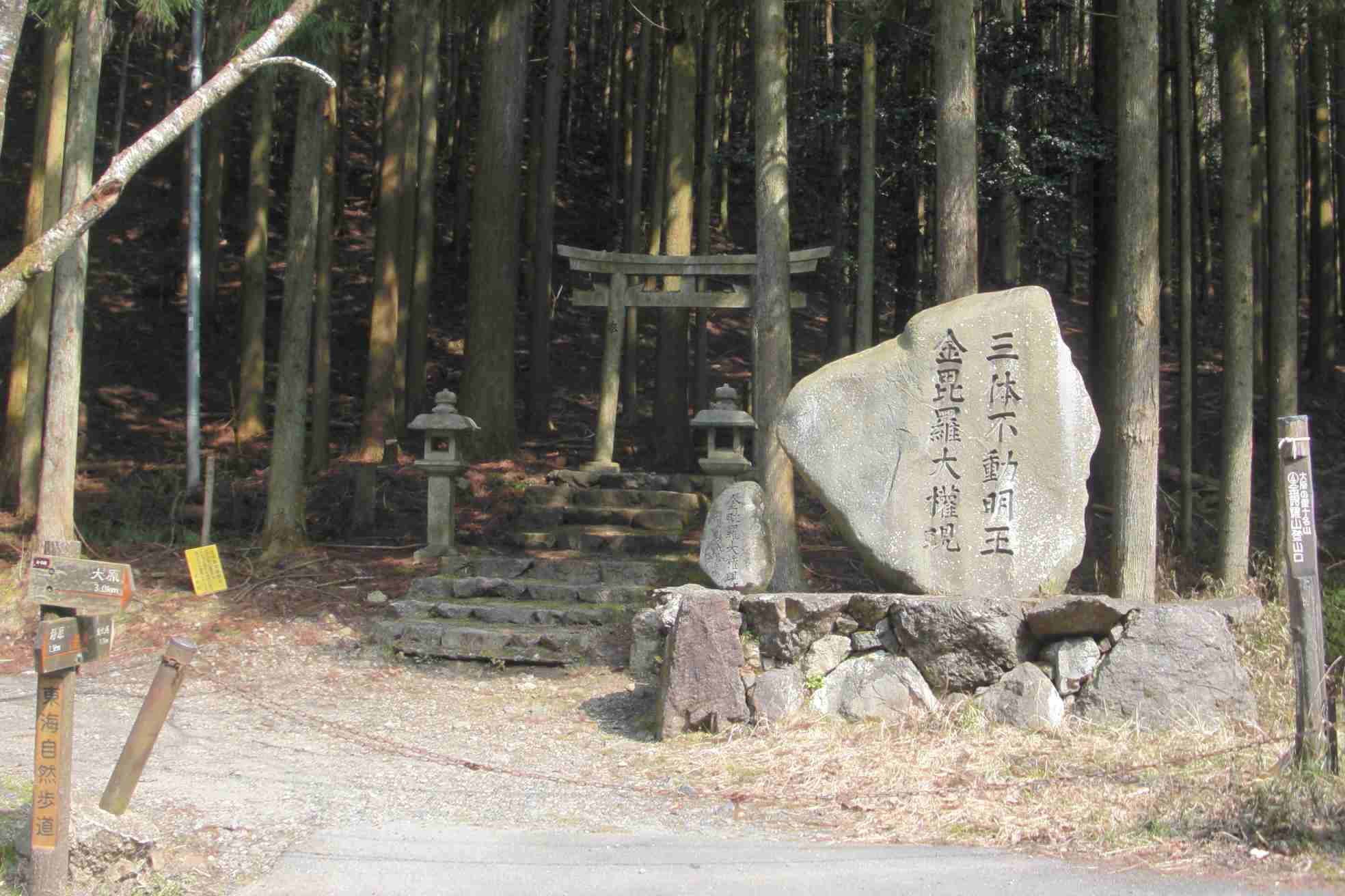 | 「金毘羅大権現」の石碑が建ち、東海道自然歩道の分岐点にもなっている | 本能寺の変の折、明智光秀が「軍馬」でこの道を越えたと伝わる |