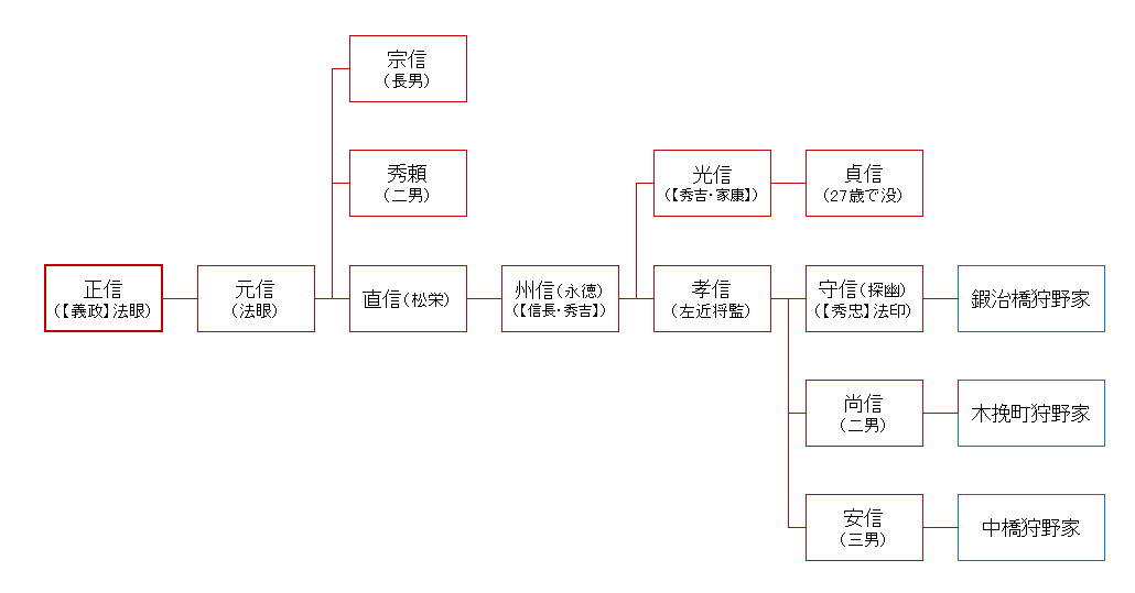 | 狩野家の家系図 (【 】は「御用絵師」に任命した権力者」) | 主な作品 |