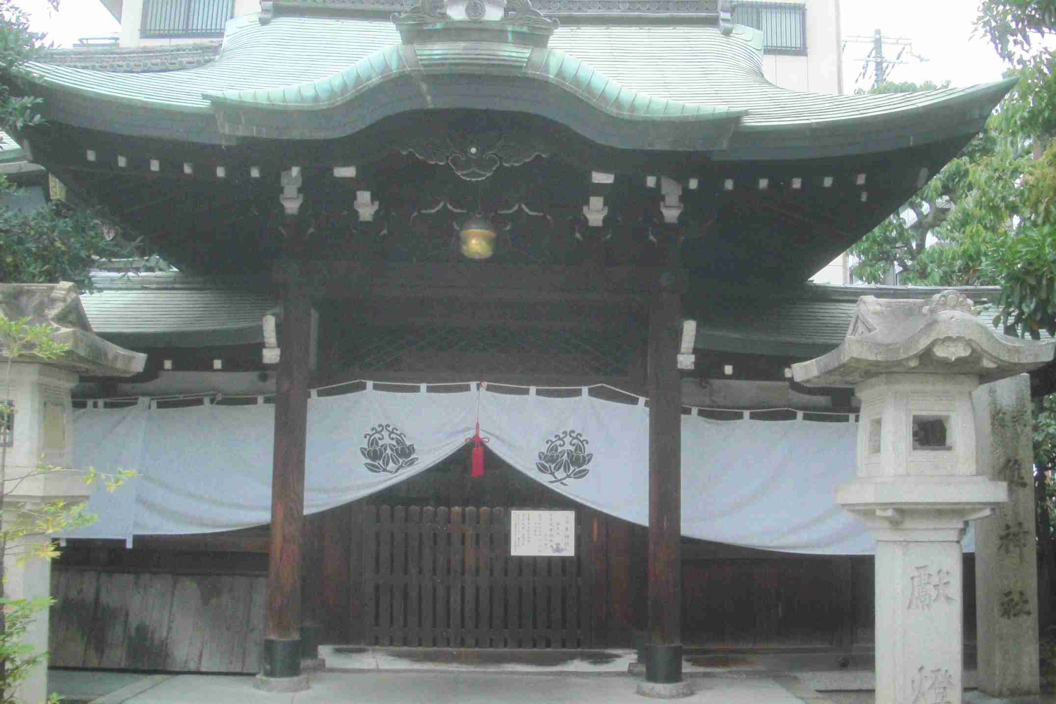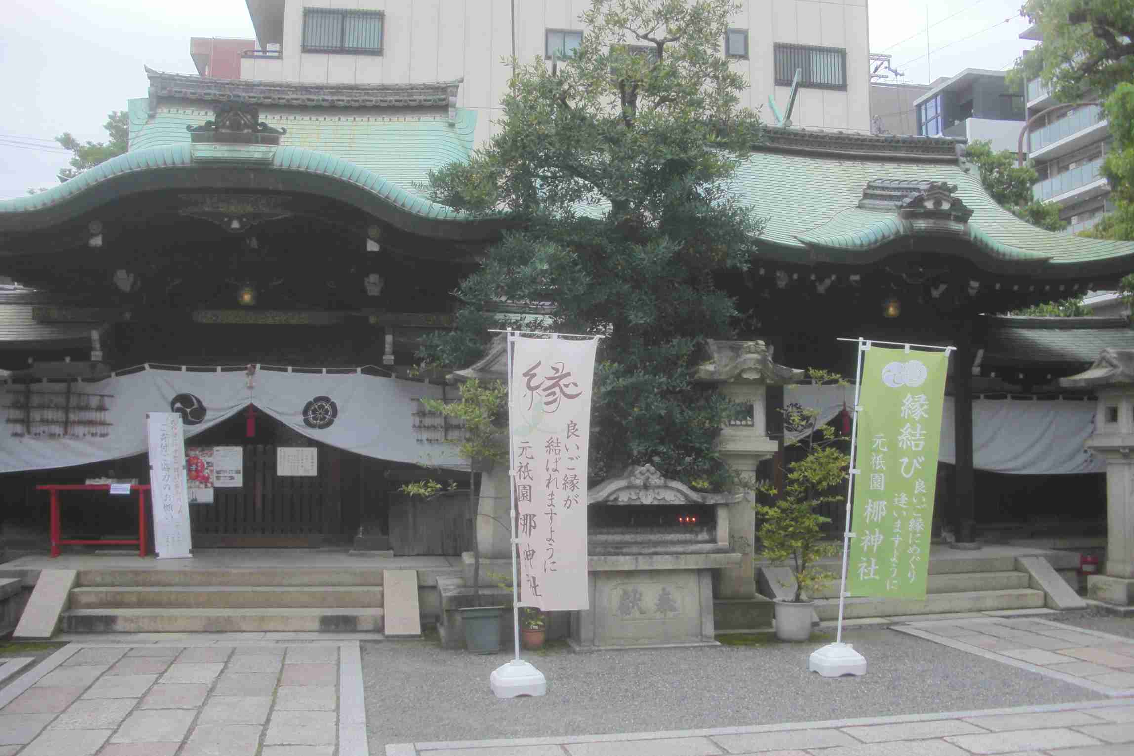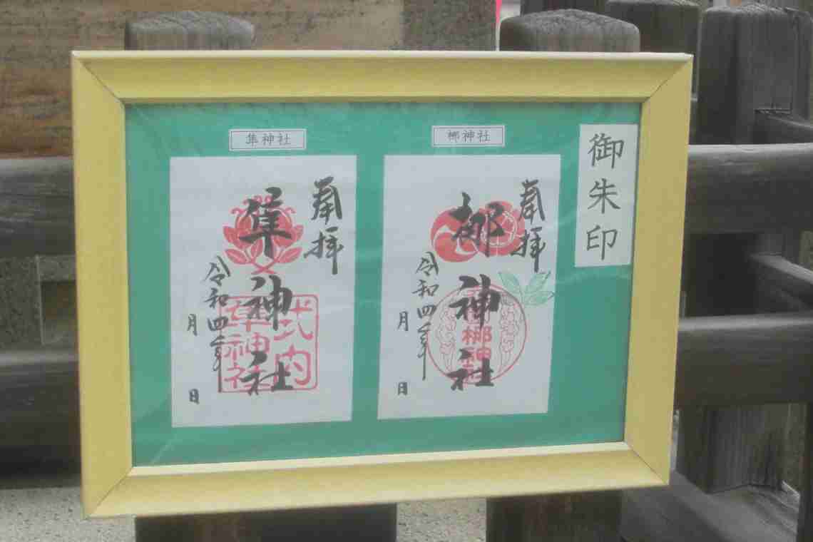 | 左が「元祇園 梛神社」、右が「隼神社」で、「本殿」が2つ並んでいる | 「隼神社」の「本殿」を拡大すると、こう見える。石標にも「隼神社」とある | 「御朱印」も「元祇園 梛神社」「隼神社」が別個に頂ける |