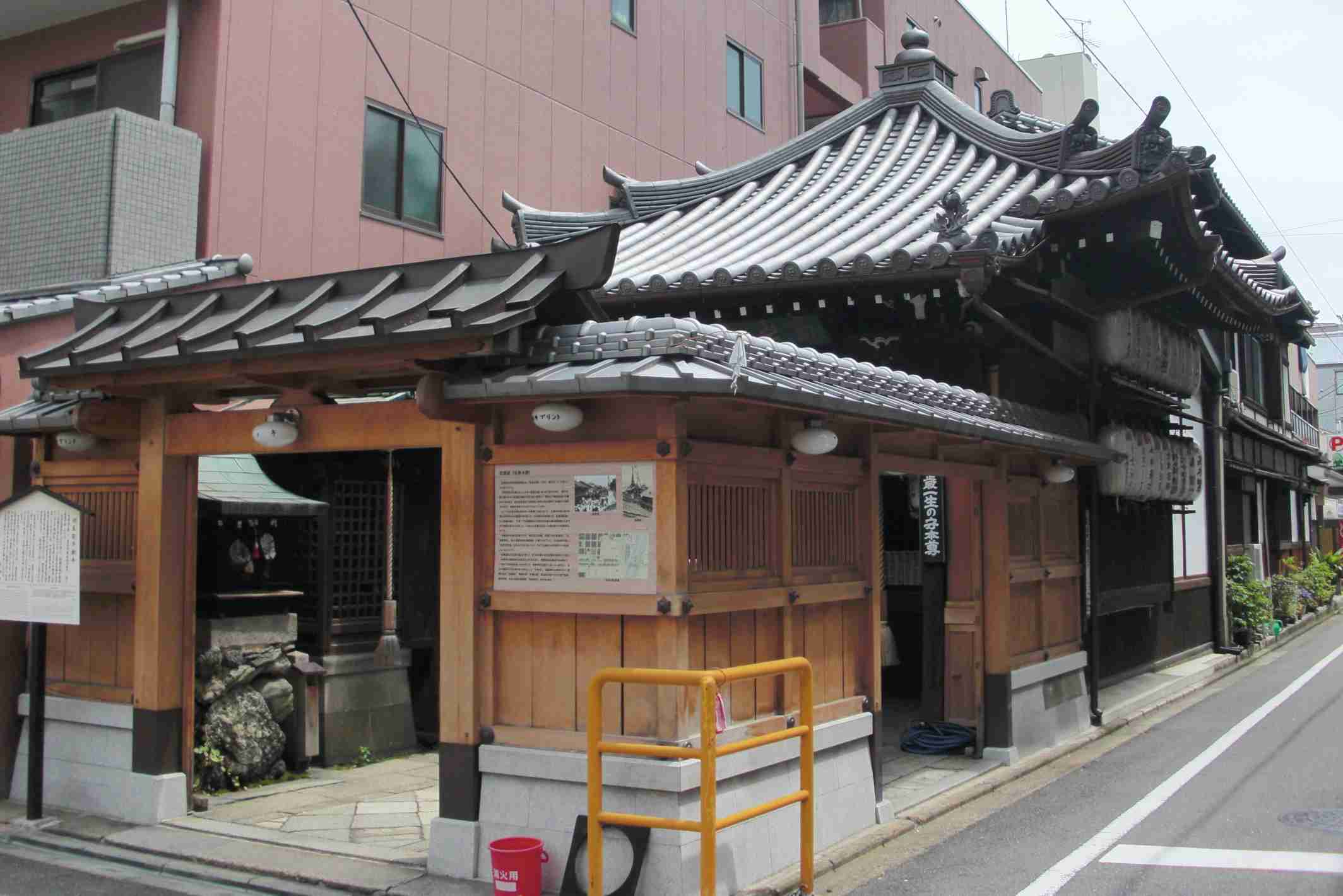| 旧「松ヶ崎村」を東西に貫く通りから、妙円寺に入るところ。鳥居を潜れば「参道」。 | 「参道」を登り詰めれば大黒堂。中に「寿福円満 開運招福」の大黒天がおれれます。 | 五山送り火の「法」の下あたりに、妙円寺がある。 |