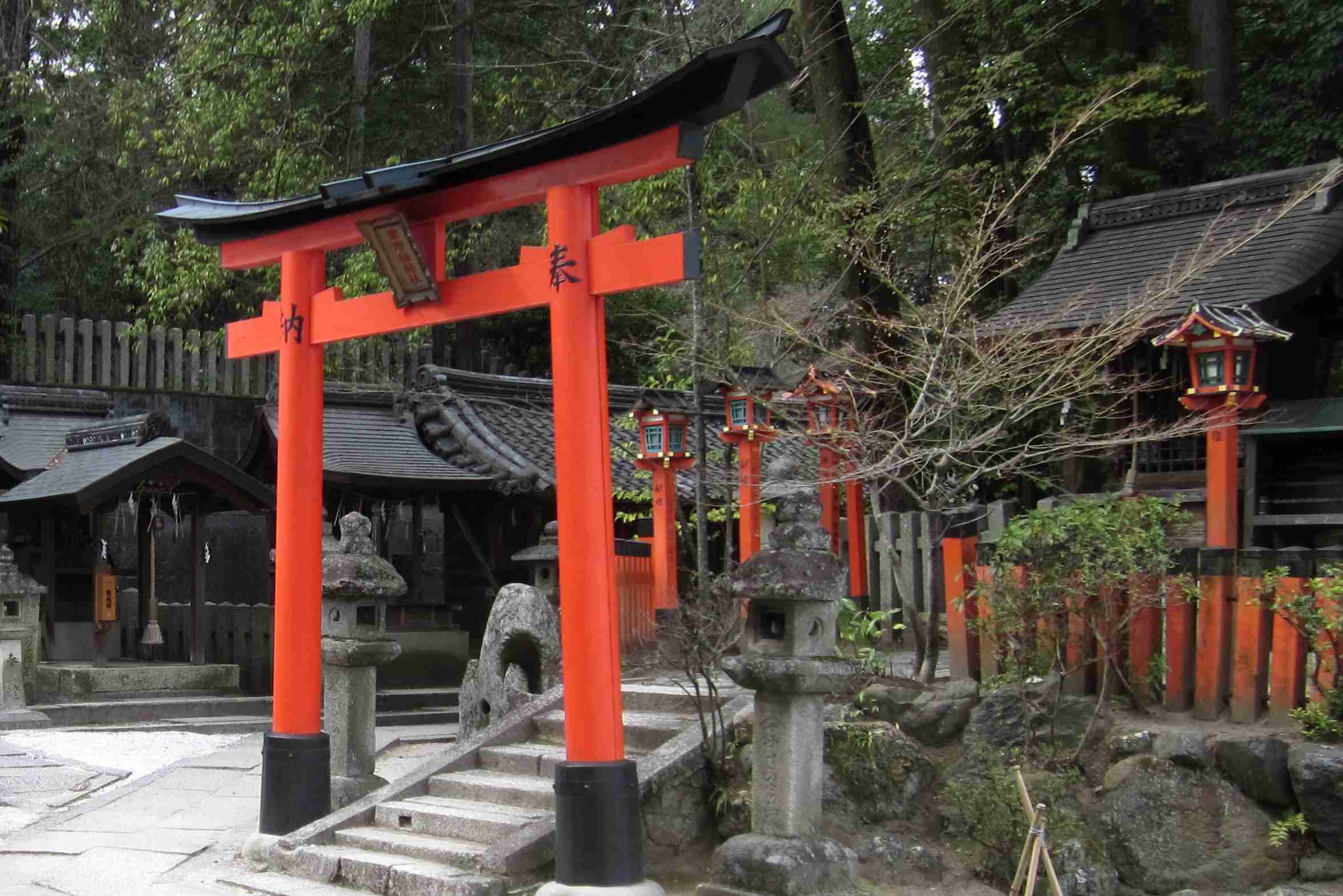 | 「城南鳥居」越しに「拝殿」が見える。 | 「古代の祈りの場」のような場所が残っている。現在、何に使われているのか不明。 | 鳥羽離宮に住んだ白河法皇らは、ここから「熊野詣に出立」したらしい。駒札が建っている。 |