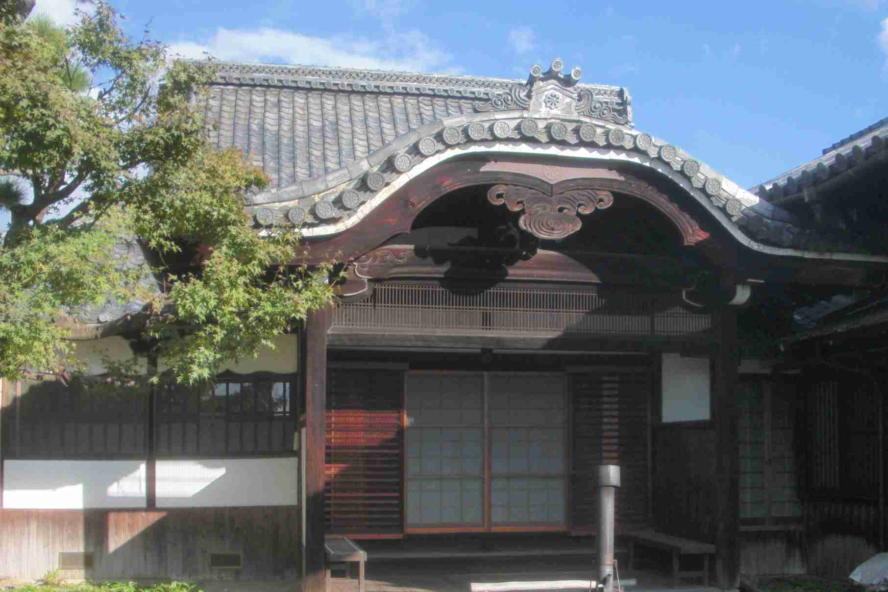 | 正門。坊城通に面している。「壬生延命地蔵尊」とある。 | 本堂。正門から入って「どんつき」にある。参道の右手に見えるのが「阿弥陀堂・壬生塚」。 | 「刀傷の残る」新選組壬生屯所八木邸(写真)は、壬生寺のすぐ北にある。 |